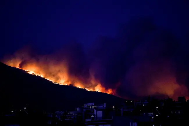 Η εφιαλτική νύχτα στην Πεντέλη: Ανοδος της θερμοκρασίας 15 βαθμών και άνεμοι 115 χιλιομέτρων την ώρα