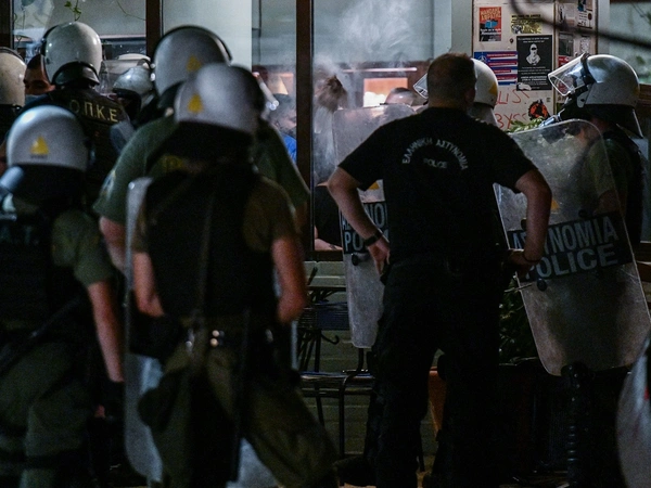 Στον χώρο του καφενείου εγκλωβίστηκαν περισσότερα από 30 άτομα. Λίγο μετά τις 12 οι αστυνομικοί προσήγαγαν δεκάδες από τους εγκλωβισμένους στο κατάστημα.