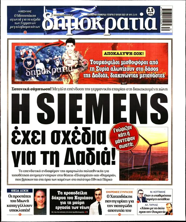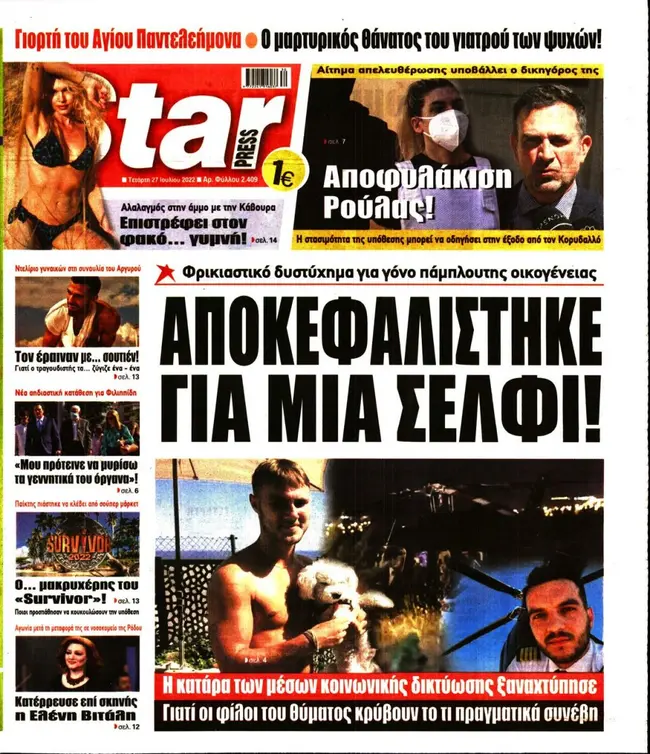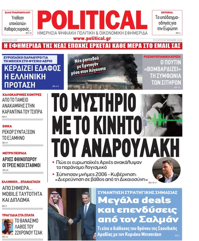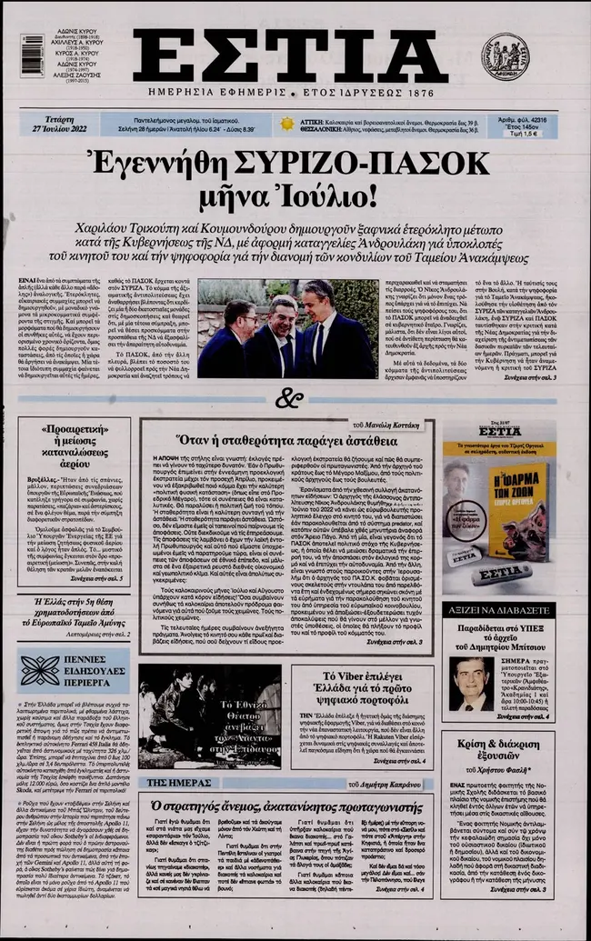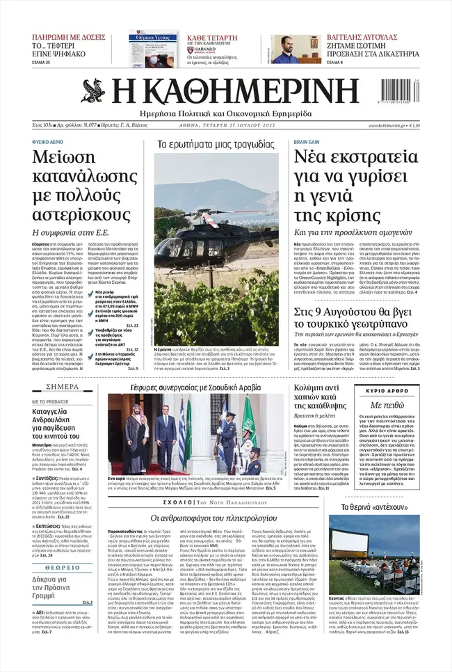 Τα πρωτοσέλιδα των ελληνικών εφημερίδων για σήμερα Τετάρτη 20 Ιουλίου. Δείτε τι φιλοξενεί στην πρώτη του σελίδα ο πολιτικός και οικονομικός Τύπος και τα θέματα της επικαιρότητας που ξεχωρίζουν.