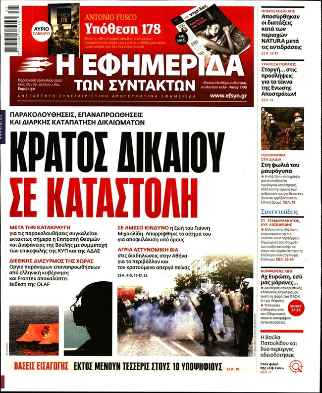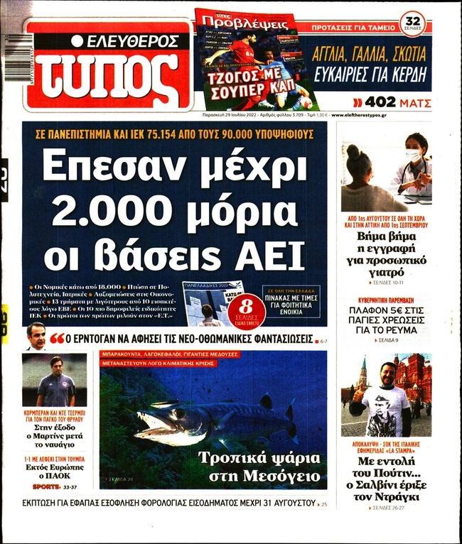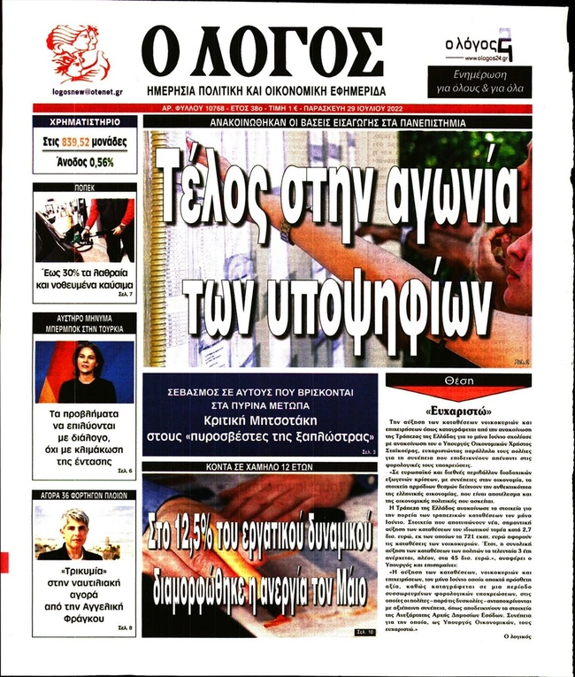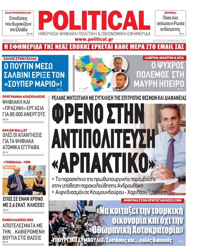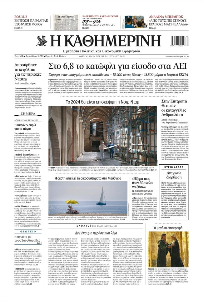 Τα πρωτοσέλιδα των ελληνικών εφημερίδων για σήμερα Παρασκευή 29 Ιουλίου. Δείτε τι φιλοξενεί στην πρώτη του σελίδα ο πολιτικός και οικονομικός Τύπος και τα θέματα της επικαιρότητας που ξεχωρίζουν.