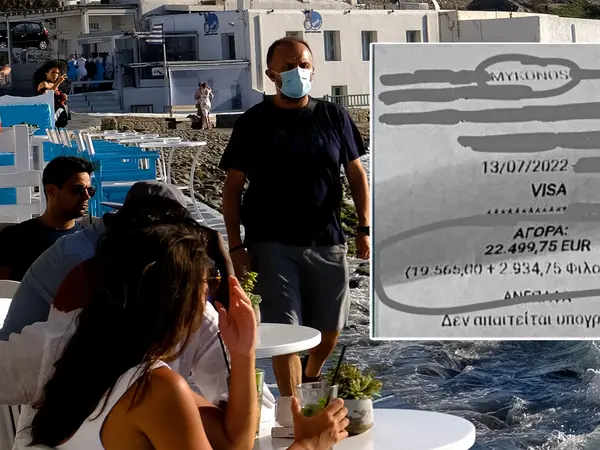 Μια παρέα στη Μύκονο πλήρωσε 19.565 ευρώ για να πιει τα ποτά της και άφησε και φιλοδώρημα 2.934 ευρώ, κάνοντας μια «σούμα» της τάξης των 22.500 ευρώ. Οι τιμές προκαλούν ίλιγγο, ενώ οι μαγαζάτορες φαίνεται να πλουτίζουν από τον ματαιόδοξο τρόπο ζωής των τουριστών. Ωστόσο, όπως αναφέρεται και στο ρεπορτάζ του Open, για αυτό τον λογαριασμό δεν... κόπηκε απόδειξη.