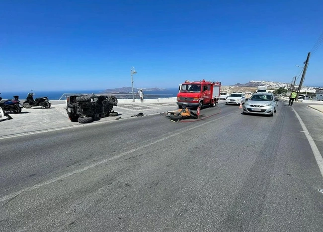 Τροχαίο δυστύχημα με θύμα έναν 34χρονο άνδρα σημειώθηκε το μεσημέρι της Τρίτης (2/8) στο νησί της Σαντορίνης στην ευθεία Φηρων Πύργου. Σύμφωνα με πληροφορίες του cyclades24.gr, τουρίστας οδηγός οχήματος τύπου γουρούνα (buggy) έστριψε αριστερά στην ευθεία ταχείας κυκλοφορίας, για να βγάλει φωτογραφίες τη καλντερα με αποτέλεσμα να παρασύρει και να σκοτώσει ένα νεαρό οδηγό και να τραυματίσει αρκετά βαριά ένα ακόμα νέο παιδί.