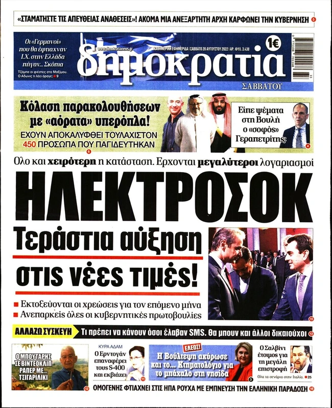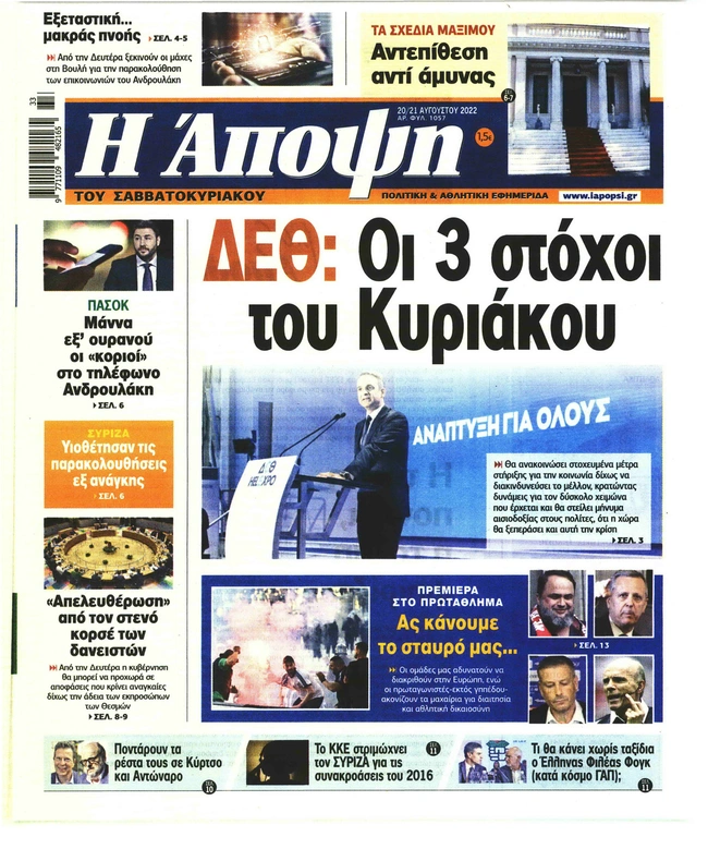 Τα πρωτοσέλιδα των ελληνικών εφημερίδων για σήμερα Σάββατο 20 Αυγούστου. Δείτε τι φιλοξενεί στην πρώτη του σελίδα ο πολιτικός και οικονομικός Τύπος και τα θέματα της επικαιρότητας που ξεχωρίζουν.