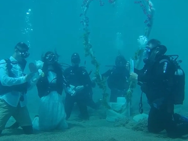 Ο πρώτος υποβρύχιος γάμος στην Ελλάδα τελέστηκε στην Αλόννησο. Το νεαρό ζευγάρι δέθηκε με τα δεσμά του... βυθού, στον Ρουσούμ Γιαλό, σε βάθος τριών μέτρων. Πρόκειται για τον Πέτρο και τη Μυρτώ που έκαναν ταχύρυθμα μαθήματα καταδύσεων και τους πάντρεψε ο δήμαρχος Πέτρος Βαφίνης.