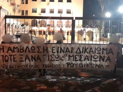 Τα μέλη του «φεμινιστικού τομέα» της αναρχικής συλλογικότητας παρέμειναν για λίγη ώρα έξω από το κτίριο της Ιεράς Συνόδου, φώναξαν συνθήματα και στη συνέχεια αποχώρησαν χωρίς να δημιουργηθεί κάποιο πρόβλημα.