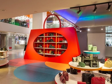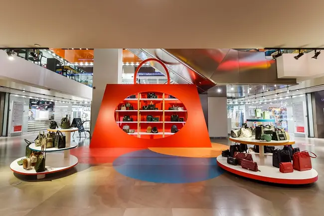 Το Installation πέρα από ωδή στο ίσως πιο απαραίτητο γυναικείο αξεσουάρ, την τσάντα, αξιοποιείται και ως σημείο προβολής και πώλησης, καθώς το εσωτερικό του είναι ειδικά διαμορφωμένο με ράφια στα οποία παρουσιάζονται τσάντες από τα brands που θα βρείτε στα πολυκαταστήματα notos.