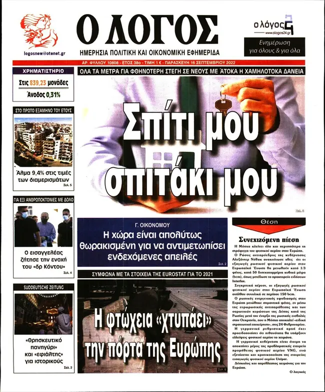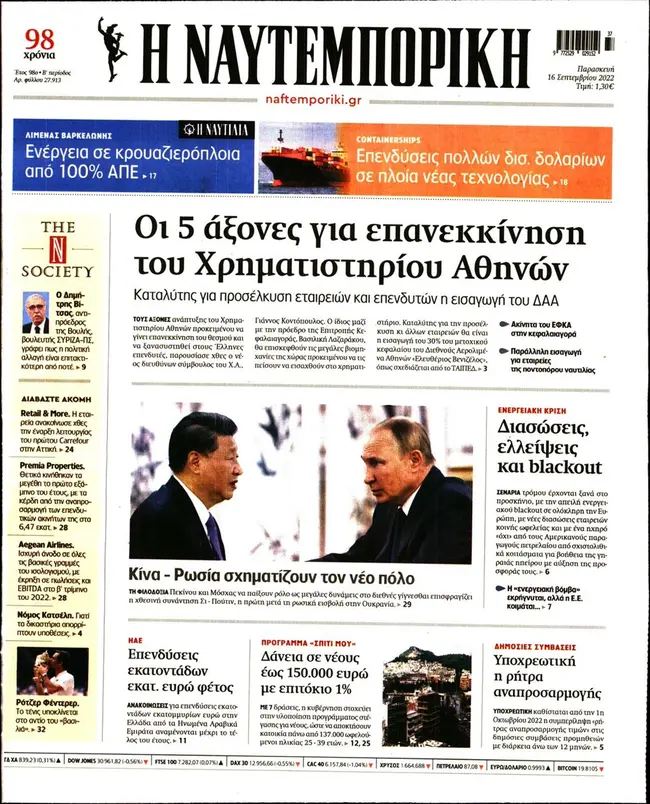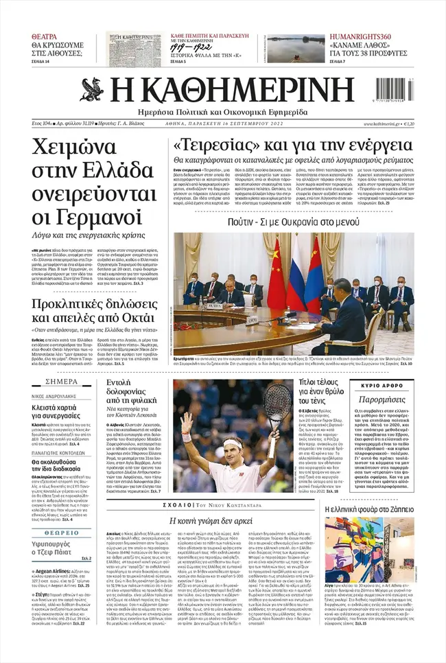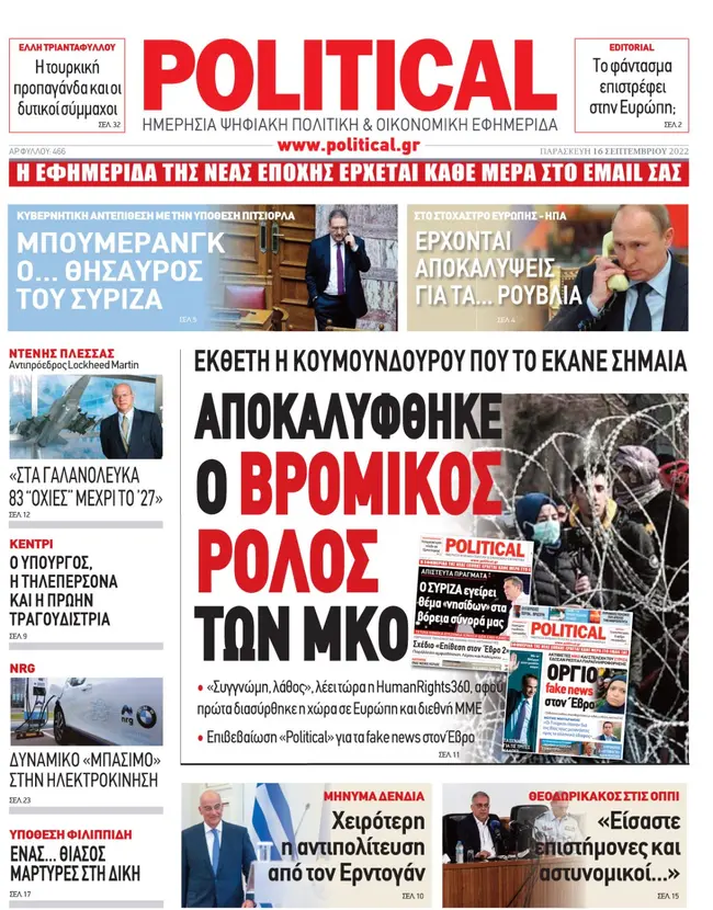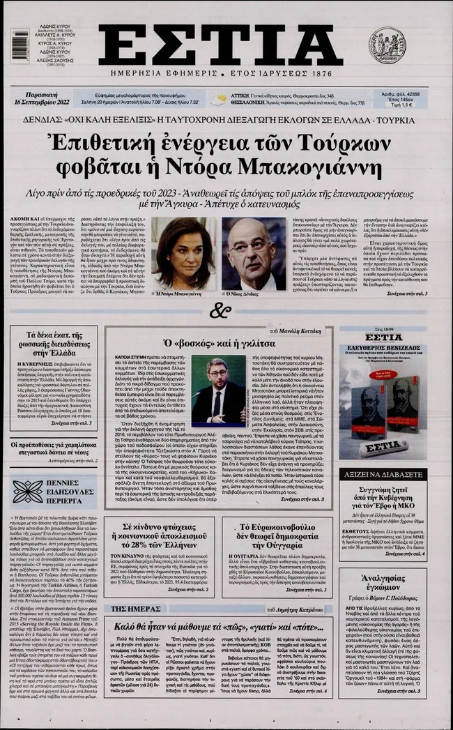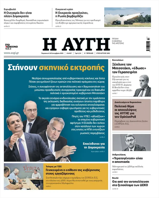 Τα πρωτοσέλιδα των ελληνικών εφημερίδων για σήμερα Παρασκευή 16 Σεπτεμβρίου. Δείτε τι φιλοξενεί στην πρώτη του σελίδα ο πολιτικός και οικονομικός Τύπος και τα θέματα της επικαιρότητας που ξεχωρίζουν.