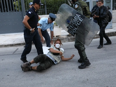 Σε όλο το Ιράν οι άνθρωποι ξεσηκώνονται πολεμώντας ενάντια στην καταπίεση του ισλαμιστικού καθεστώτος. Στεκόμαστε αλληλέγγυοι με τους ανθρώπους που αγωνίζονται για την απελευθέρωση του Ιράν». Ωστόσο, κάποια στιγμή οι άντρες των ΜΑΤ, για άγνωστους μέχρι τώρα λόγους, άρχισαν να απωθούν τους διαδηλωτές και διαδηλώτριες χρησιμοποιώντας τις ασπίδες τους με αποτέλεσμα να τους σκίσουν το πανό που κρατούσαν.