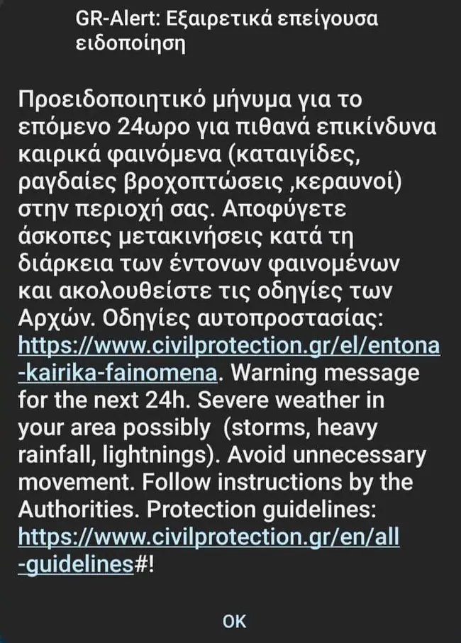 Καιρός: Προειδοποιητικό μήνυμα προκειμένου οι πολίτες να είναι προσεκτικοί δεδομένης της επερχόμενης κακοκαιρίας Bogdan απέστειλε νωρίτερα το 112. Στο μήνυμα αναφέρεται πως εντός του επόμενου 24ωρου θα σημειωθούν επικίνδυνα καιρικά φαινόμενα και ως εκ τούτου οι πολίτες καλούνται να περιορίσουν τις μετακινήσεις τους, να είναι ιδιαιτέρως προσεκτικοί και να ακολουθούν τις οδηγίες των Αρχών. Αντίστοιχα μηνύματα έχουν σταλεί και σε άλλες περιοχές της Ελλάδας, ενδεικτικά στην Ηπειρο.