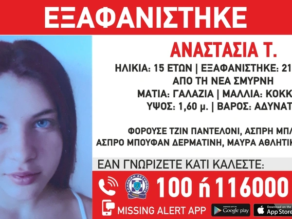 Συγκεκριμένα, η 15χρονη Αναστασία Τ. είχε εντοπιστεί στην περιοχή του Μαραθώνα, έπειτα από δίμηνη αναζήτηση και επέστρεψε στη δομή που φιλοξενούνταν. Ωστόσο, λίγες ώρες αργότερα, χάθηκαν ξανά τα ίχνη της, με το «Χαμόγελο του Παιδιού» να εκδίδει νέο Missing Alert.