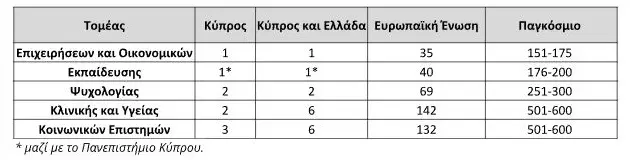 - 132ο στην Ευρωπαϊκή Ένωση, 3ο στην Κύπρο και 6ο σε Κύπρο και Ελλάδα, στον τομέα των Κοινωνικών Επιστημών.