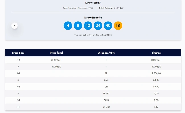 Σήμερα, Τρίτη 1 Νοεμβρίου 2022, στην κλήρωση Τζόκερ (2513) του ΟΠΑΠ, μοιράζεται στους τυχερούς της πρώτης κατηγορίας το ποσό των 860.000 ευρώ. Οι τυχεροί αριθμοί στη σημερινή κλήρωση Τζόκερ είναι οι εξής: 4, 8, 12, 24, 40 και Τζόκερ ο αριθμός 18.