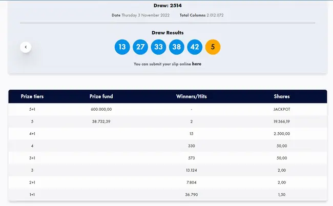 Σήμερα, Πέμπτη 3 Νοεμβρίου 2022, στην κλήρωση Τζόκερ (2514) του ΟΠΑΠ, μοιράζεται στους τυχερούς της πρώτης κατηγορίας το ποσό των 600.000 ευρώ. Οι τυχεροί αριθμοί στη σημερινή κλήρωση Τζόκερ είναι οι εξής: 13, 27, 33, 38, 42 και Τζόκερ ο αριθμός 5.