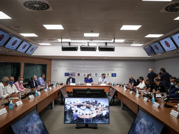 Ο Διευθυντής της Εθνικής Μετεωρολογικής Υπηρεσίας (ΕΜΥ), Θεόδωρος Κολυδάς, ενημέρωσε διεξοδικά την πολιτική ηγεσία του Υπουργείου και όλους τους συμμετέχοντες για την πορεία της κακοκαιρίας, καθώς επίσης και για την ανά 12 ώρες επικαιροποίηση του Έκτακτου Δελτίου Επικίνδυνων Καιρικών Φαινομένων από την Εθνική Μετεωρολογική Υπηρεσία, διαθέσιμο στην ιστοσελίδα www.emy.gr.