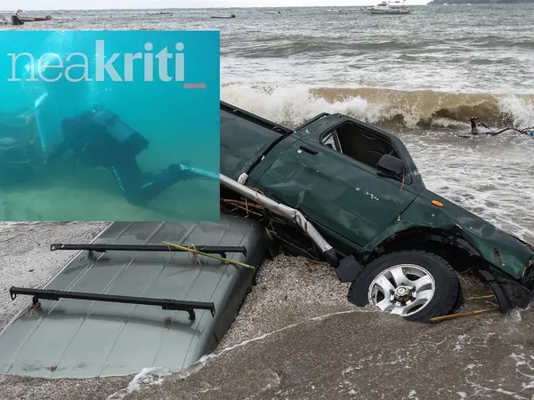 Η εικόνα είναι απόκοσμη και δεν θυμίζει τα πεντακάθαρα νερά της Αγίας Πελαγίας στην Κρήτη. Οι δύτες κινούνται ανάμεσα σε θαμμένα αυτοκίνητα, λάστιχα και ολόκληρα εμπορεύματα καταστημάτων στην περιοχή μετά την φονική κακοκαιρία που στοίχισε τη ζωή σε δύο ανθρώπους. Η εικόνα είναι συγκλονιστική καθώς η θάλασσα μετατράπηκε σε ένα «νεκροταφείο» αυτοκινήτων.