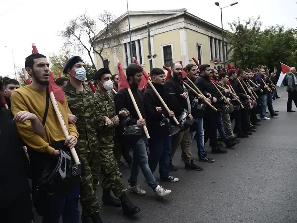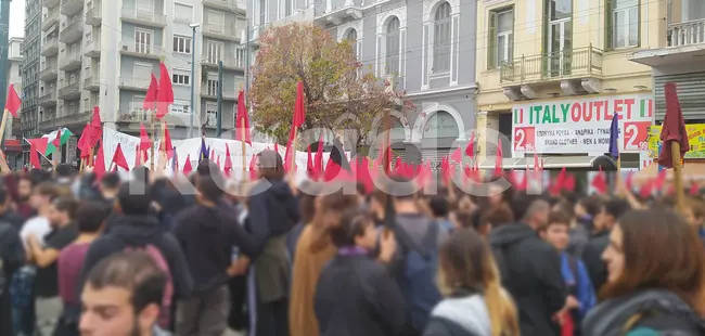 Ξεκίνησε η πορεία για την εξέγερση του Πολυτεχνείου και όπως πάντα στην κεφαλή της πορείας προπορεύεται η αιματοβαμμένη σημαία. Λίγο μετά τις 13:30 το μεσημέρι έκλεισαν οι πύλες του Πολυτεχνείου και σε λίγη ώρα θα πραγματοποιηθεί η καθιερωμένη εκδήλωση μνήμης της Επιτροπής Εορτασμού της 17ης Νοέμβρη, κατά την οποία θα γίνει η ανάκρουση του ύμνου της εξέγερσης του Πολυτεχνείου, αφού προηγηθεί το προσκλητήριο των νεκρών. Οι εκδηλώσεις μνήμης για την επέτειο της 17 Νοεμβρίου, θα κορυφωθούν με τη μεγάλη πορεία προς την αμερικανική πρεσβεία.