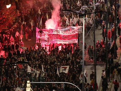Ξεχωριστή πορεία πραγματοποίησε το «μπλοκ» της ΠΑΣΠ με την αιματοβαμμένη σημαία του Πολυτεχνείου, η οποία ολοκληρώθηκε στις 17:20 μπροστά από την πρεσβεία των ΗΠΑ.