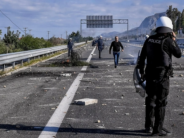 Οι ταραξίες πέταξαν διάφορα αντικείμενα στο οδόστρωμα και πλέον από τις Αρχές περιμένουν μηχανήματα καθαρισμού για να τα απομακρύνουν από τον δρόμο και να δοθεί ξανά ο δρόμος σε κυκλοφορία.