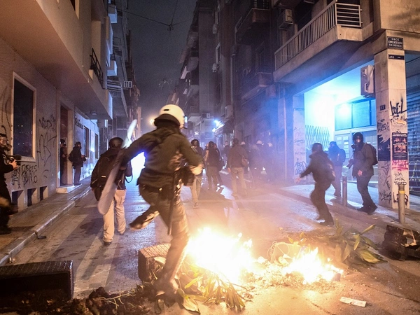 Καταδρομική επίθεση με μολότοφ σε βάρος διμοιρίας των ΜΑΤ σημειώθηκε αργά το βράδυ της Πέμπτης στην πλατεία των Εξαρχείων. Μετά από πορεία αλληλεγγύης για τον τραυματισμό του 16χρονου Ρομά στη Θεσσαλονίκη από αστυνομικά πυρά, μία ομάδα αντιεξουσιαστών φέρεται να επιτέθηκε στους άνδρες των ΜΑΤ που βρίσκονταν στην πλατεία για τη φύλαξη του εργοταξίου του Μετρό. Από τους δράστες πετάχτηκαν διάφορα αντικείμενα, πέτρες και μολότοφ με αποτέλεσμα τουλάχιστον τρία αυτοκίνητα να τυλιχτούν στις φλόγες. Οι δυνάμεις των ΜΑΤ απάντησαν με ρίψεις κρότου λάμψης και δακρυγόνα.