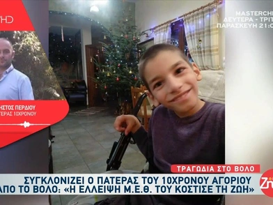Θλίψη έχει προκαλέσει στον Βόλο ο θάνατος του 10χρονου παιδιού από οξεία μυοκαρδίτιδα, μετά από τον υψηλό πυρετό που έκανε λόγω της γρίπης Α’ που είχε. Συντετριμμένος ο πατέρας του, καταγγέλλει μαζί με φορείς Υγείας της περιοχής την ανυπαρξία ΜΕΘ Παίδων στο «Αχιλλοπούλειο» Νοσοκομείο της πόλης. «Την Παρασκευή το πρωί ανέβασε ξαφνικά πυρετό 39,5. Είχε και την παράλυση και δεν μπορούσε να μας το πει. Του έκαναν εισαγωγή στο νοσοκομείο κανονικά, όμως δεν του έδωσαν τίποτα. Άρχιζαν και γίνονταν μπλε τα δάχτυλα και τα χείλη του», δηλώνει ο πατέρας του 10χρονου παιδιού στην εκπομπή «Αλήθειες με τη Ζήνα» στο Star.