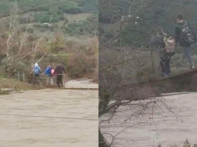 Μικρά παιδιά κρέμονται στην κυριολεξία πάνω από τα φουσκωμένα νερά του ποταμού Ευήνου!