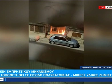 Συναγερμός σήμανε στις Αρχές τα ξημερώματα της Πέμπτης, καθώς εξερράγη εμπρηστικός μηχανισμός στην είσοδο πολυκατοικίας, στην οποία διαμένουν δύο απόστρατοι αστυνομικοί. Οι δράστες τοποθέτησαν στην είσοδο του κτηρίου, που βρίσκεται στην Καισαριανή, ένα πλαστικό μπουκάλι με βενζίνη και προσανάμματα. Ο μηχανισμός εξερράγη και προκλήθηκε μικρής έκτασης πυρκαγιά, η οποία ευτυχώς δεν προκάλεσε εκτεταμένες ζημιές.