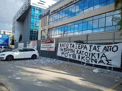 Μέλη της συλλογικότητας ανήρτησαν πανό στον περίβολο της ΑΑΔΕ με το σύνθημα «Κάτω τα ξερά σας από την πρώτη κατοικία», ενώ έριξαν τρικάκια που μεταξύ άλλων αναγράφουν: «Κράτος και εισπρακτικές το ίδιο μαγαζί». Παράλληλα, στη δημοσιότητα δόθηκαν φωτογραφίες από την παρέμβαση.