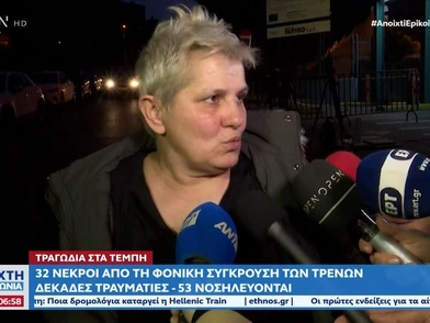 Για τη σύγκρουση τρένων στα Τέμπη που άφησε πίσω της μέχρι στιγμής 32 νεκρούς μίλησε μία γυναίκα που επέβαινε στην αμαξοστοιχία Intercity 62 λέγοντας, μεταξύ άλλων, ότι «το τρένο διαλύθηκε και έφυγε στο γκρεμό». «Έσπασαν τα πάντα μέσα καθίσματα, έφυγε όλη η πλευρά του τρένου, διαλύθηκε και έφυγε στο γκρεμό», λέει χαρακτηριστικά μία γυναίκα που επέβαινε στο τρένο.
