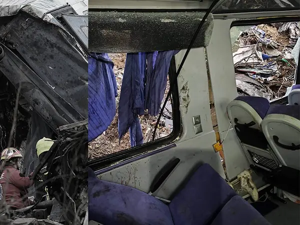H φωτογραφία που ανάρτησε ο κ. Σούρλας στο προφίλ του στο Facebook συγκλονίζει: Τα πάντα μέσα στο βαγόνι έχουν διαλυθεί. Αίματα, ξηλωμένα καθίσματα και σπασμένα τζάμια παντού.