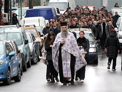 Θλιμμένοι και με δάκρυα στα μάτια, συγγενείς και φίλοι λένε το τελευταίο αντίο στην Ιφιγένεια Μήτσκα που έχασε τη ζωή της στο σιδηροδρομικού δυστύχημα στα Τέμπη. Η εξόδιος ακολουθία ψάλλεται στον Ιερό Ναό Πέτρου και Παύλου στα Γιαννιτσά. Τραγικές φιγούρες είναι τα μέλη της οικογένειας της φοιτήτριας που είναι συντετριμμένοι από τον θάνατό της.