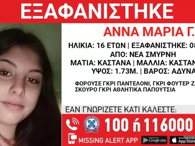 Στις 08/03/2023, εξαφανίστηκε από δομή παιδικής προστασίας στη Νέα Σμύρνη, η Άννα Μαρία Γ., 16 ετών.