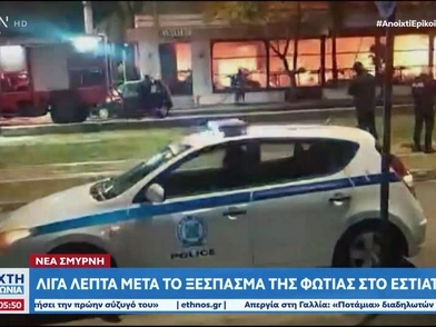 Στις 4.30 ώρα τα ξημερώματα της Παρασκευής φωτιά ξέσπασε φωτιά σε κατάστημα εστίασης επί της οδού Ελευθερίου Βενιζέλου στη Νέα Σμύρνη. Η καταστροφή που έχει υποστεί το κατάστημα εστίασης είναι ολοκληρωτική, ενώ στο σημείο έχουν σπεύσει οχήματα της Πυροσβεστικής. Συγκεκριμένα βρίσκονται 10 πυροσβέστες με 4 οχήματα και ένα γερανοφόρο ενώ οι δυνάμεις πρόκειται να ενισχυθούν.