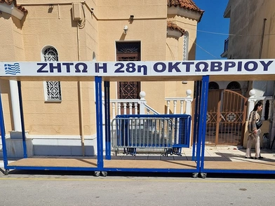 «Σήμερα, το συνεργείο του Δήμου πήγε να τοποθετήσει ένα πλαίσιο πάνω από την εξέδρα των επισήμων, το οποίο έχει πάνω σε μόνιμη μελαμίνη την επιγραφή ”28η Οκτωβρίου”. Κάθε χρόνο στις 25 Μαρτίου πάνω σε αυτή τη μελαμίνη τοποθετείται ένας μουσαμάς με την επιγραφή 25η Μαρτίου. Η επιγραφή ήταν φθαρμένη και έτσι απευθύνθηκαν σε ένα κατάστημα που τα φτιάχνει. Αυτό καθυστέρησε να γίνει και κάποιος από εκεί το τράβηξε φωτογραφίες».