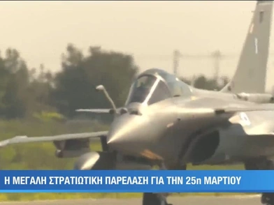 Η κάμερα της ΕΡΤ κατέγραψε την ώρα της απογείωσης των πολεμικών αεροσκαφών Rafale, τα οποία στην συνέχεια πέταξαν πάνω από τον ουρανό της Αθήνας, στα πλαίσια της παρέλασης για τον εορτασμό της έναρξης της Ελληνικής Επανάστασης, στις 25 Μαρτίου 2023.