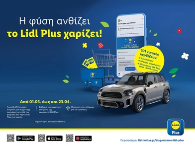 Έως και τις 23 Απριλίου 2023, μέσω του Lidl Plus, θα έχουμε το δικαίωμα να μπούμε στην κλήρωση και να διεκδικήσουμε 50.000 ευρώ σε εκπτωτικά κουπόνια, 50 μοναδικά δώρα τεχνολογίας καθώς και ένα αυτοκίνητο Mini Countryman!