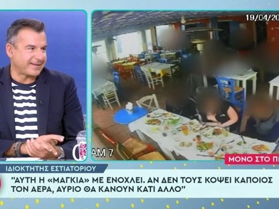 Ο ιδιοκτήτης της ταβέρνας μιλώντας στην εκπομπή «Το Πρωινό» του ΑΝΤ1 είπε ότι οι νεαροί είχαν σχέδιο και αυτό αποτυπώνεται μέσα από τις κινήσεις τους, ενώ τόνισε μεταξύ άλλων ότι αν δεν πάνε στο μαγαζί θα τους κάνει μήνυση.