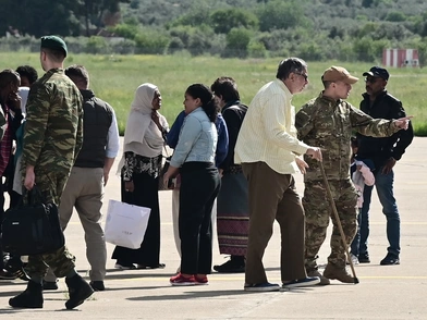 Στο αεροδρόμιο της Τανάγρας βρίσκονται αρκετά στελέχη του υπουργείου Εθνικής Άμυνας αλλά και των Ενόπλων Δυνάμεων, προκειμένου να υποδεχθούν του 16 Έλληνες, στους οποίους βρίσκονται -μεταξύ άλλων- και αρκετά παιδιά.