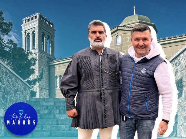 Όλο το χωριό, άνθρωποι κάθε ηλικίας, μικρά παιδιά, άντρες με την καμζόλα τους (παραδοσιακή φορεσιά) και γυναίκες με το σεγκούνι τους (παραδοσιακή ενδυμασία γυναικών), τραγουδούν, χορεύουν και κατεβαίνουν όλοι μαζί τα σκαλάκια του Αγίου Γεωργίου με τους οργανοπαίκτες να παίζουν ασταμάτητα και τους γενναίους να πυροβολούν στον αέρα…