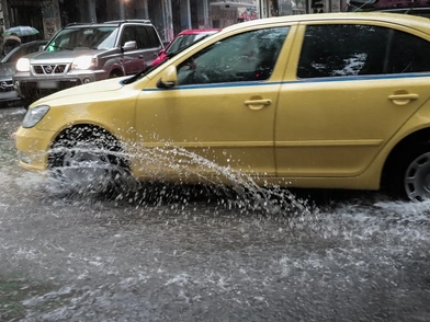 - Μείνετε μέσα και ανάψτε τα προειδοποιητικά φώτα στάσης (φώτα έκτακτης ανάγκης) μέχρι να κοπάσει η καταιγίδα.