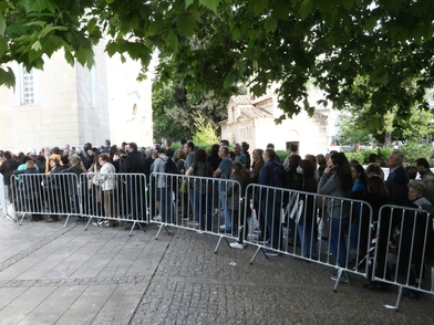 Σύμφωνα με τον προγραμματισμό κάθε 10 λεπτά μπαίνουν στη Μητρόπολη Αθηνών από 30 άτομα για να προσκυνήσουν την εικόνα.