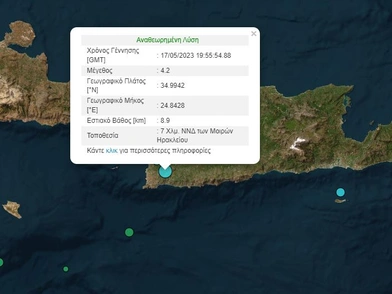 Σεισμός στο Ηράκλειο της Κρήτης καταγράφηκε στις 22:55. Σύμφωνα με το σύστημα ενημερώσεων του Γεωδυναμικού Ινστιτούτου η ένταση του σεισμού είναι 4,2 Ρίχτερ.
