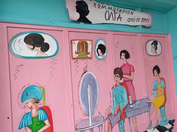 Στο χώρο όπου δηλαδή λειτουργούσε το κομμωτήριο, υπάρχει ζωγραφιά με γυναίκες της δεκαετίας '60 να φτιάχνουν τα μαλλιά τους, το περίπτερο που έχασκε άδειο εδώ και περίπου 10 χρόνια «ξανανοίγει» και στο μπακάλικο «Η Αφθονία» ο καταστηματάρχης υποδέχεται τους πελάτης κρατώντας τη σέσουλα. Χρώμα με προσωπογραφίες παιδιών αποκτά και η στάση λεωφορείων ενώ όλο το χωριό αποτυπώνεται στη στάση των ταξί!