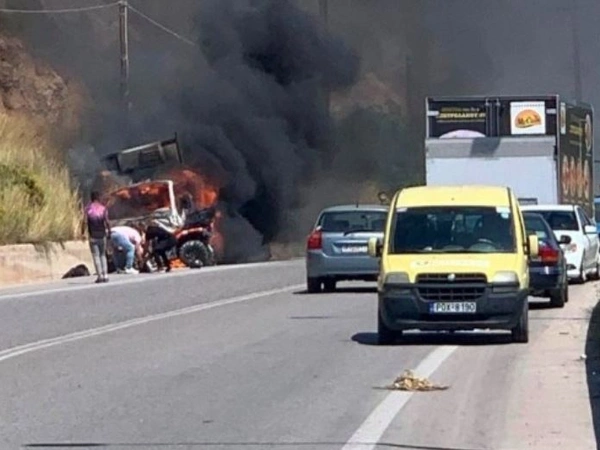 Τραγωδία στη Ρόδο μετά από τροχαίο που σημειώθηκε το μεσημέρι της Παρασκευής (19/5) στον επαρχιακό δρόμο Τσαίρι - Αεροδρόμιο. Μία «γουρούνα» συγκρούστηκε μετωπικά με φορτηγό, με αποτέλεσμα και τα δύο να τυλιχθούν στις φλόγες και ένας τουρίστας να χάνει τη ζωή του.