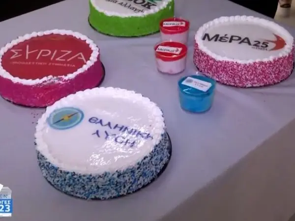 Τη δική του «γλυκιά» κάλπη έστησε ζαχαροπλαστείο στη Θεσσαλονίκη, το οποίο κάθε φορά που διεξάγονται εκλογές φτιάχνει τούρτες και γλυκά με τα σήματα και τα χρώματα των κομμάτων.