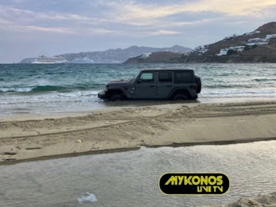 Όπως αναφέρει το MykonosLive TV ένα ζευγάρι αποφάσισε να πάει βραδινή βόλτα στην παραλία Κόρφος στο νησί των Ανέμων - για άγνωστο λόγο - θέλησε να συνεχίσει τη βόλτα του μέσα στη θάλασσα, χωρίς να βγει από το πολυτελές τζιπ που είχε νοικιάσει.