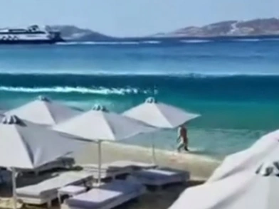 Συναγερμός σήμανε σε παραλία της Μυκόνου όπου ένα ταχύπλοο προκάλεσε… τσουνάμι με τα απόνερά του. Από το περιστατικό τραυματίστηκαν ελαφρά δύο γυναίκες.