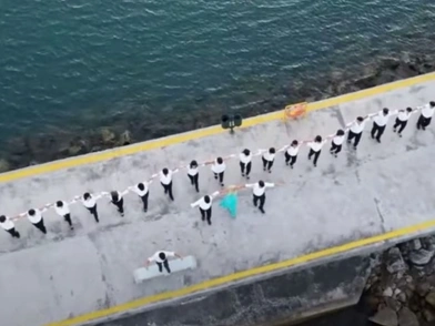 Το πιάνο τοποθετήθηκε πάνω σε ένα ιστιοπλοϊκό που ήταν περιτριγυρισμένο από άλλα 13 ιστιοπλοϊκά, γεμάτα χορευτές. Στην προκυμαία του λιμανιού δεκάδες άλλοι χορευτές κινούνταν στα βήματα του διεθνώς διαδεδομένου μουσικού θέματος.