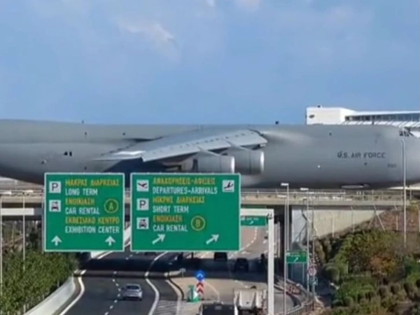 Η εικόνα από το αμερικανικό μεταγωγικό C-5 Galaxy να περνάει πάνω από τη γέφυρα της Αττικής Οδού στο αεροδρόμιο Ελευθέριος Βενιζέλος προκαλεί δέος. Το εντυπωσιακό βίντεο «ανέβηκε» στο TikTok και έχει πάνω από 450.000 προβολές.