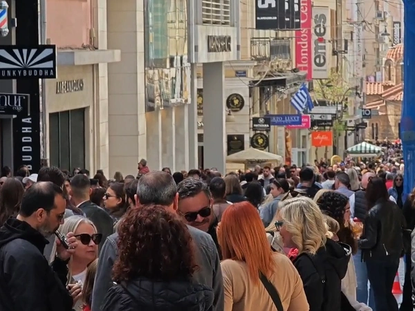 Το αδιαχώρητο επικράτησε στην Ερμού το πρωί της Κυριακής (13/4), καθώς τα καταστήματα ήταν ανοικτά και χιλιάδες Αθηναίοι και τουρίστες έσπευσαν για να τα επισκεφθούν.