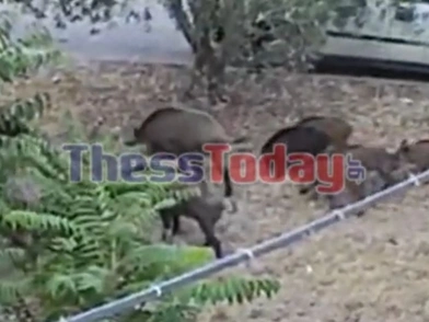 Aπρόσμενους επισκέπτες αντίκρυσαν οι κάτοικοι στο Ωραιόκαστρο Θεσσαλονίκης όταν είδαν αγέλη αγριογούρουνων γύρω από τα σπίτια τους.